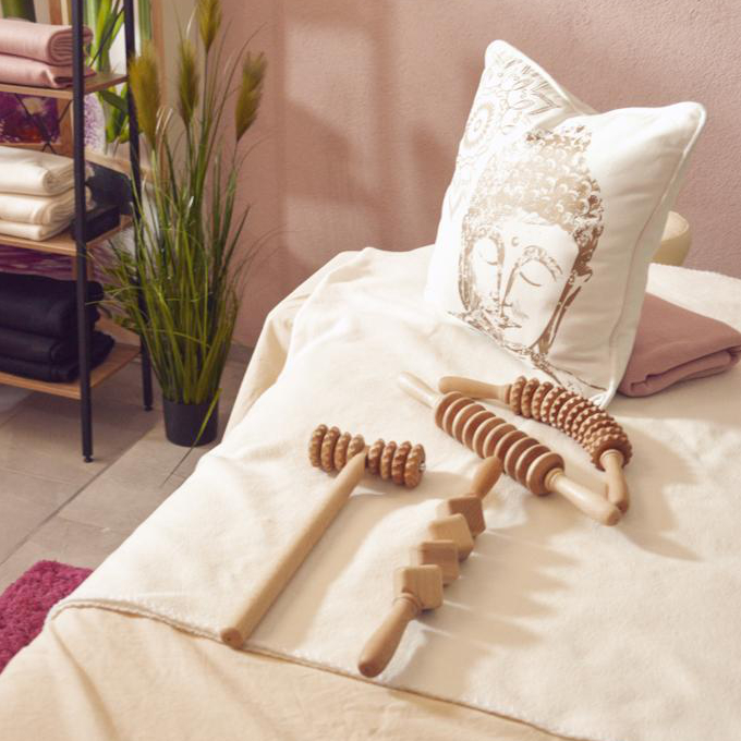 Bei der Madero Massage werden Körperregionen gezielt manuell massiert. Zum Einsatz kommen anatomisch geformte Holzwalzen in verschiedenen Formen. Mit den Holzwalzen werden die Körperbereiche durch gezielte Massagetechniken stimuliert und Fettdepots abgebaut. Die Silhouette wird somit gestrafft und Cellulite kann somit gemindert werden.